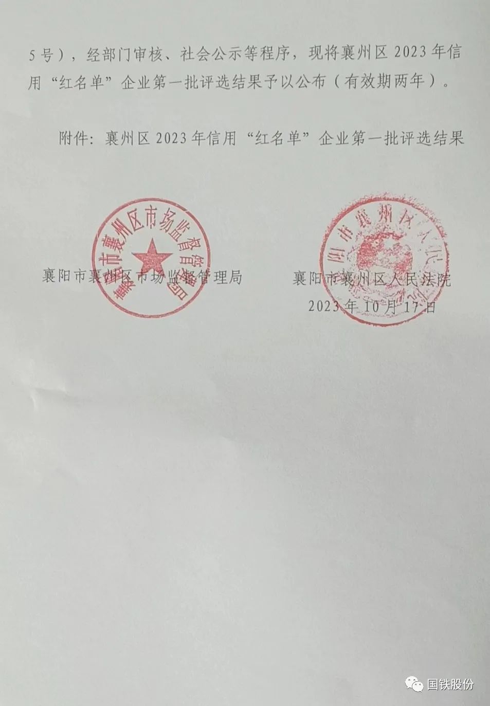 【喜報】國鐵機電獲“襄州區(qū)2023年信用‘紅名單’企業(yè)”榮譽